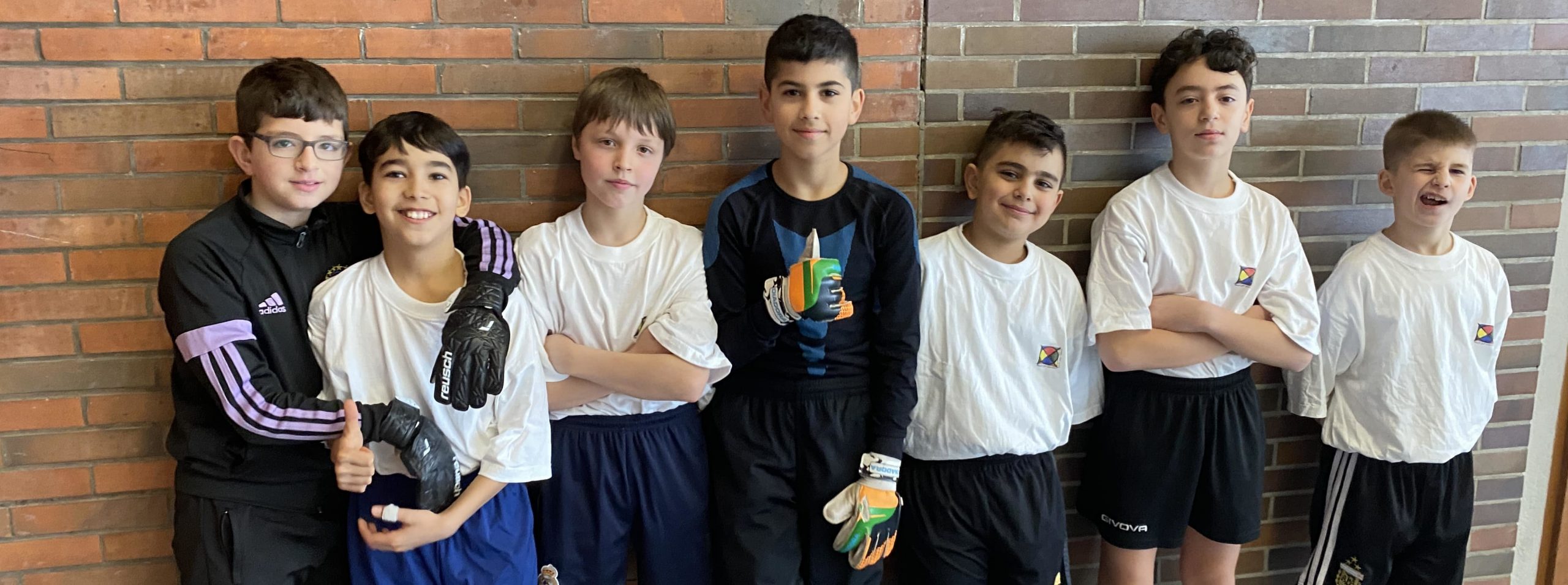 Teilnahme des 4. Jahrgangs und der Mädchen-Fußball-AG am Grundschul-Festival des NFV im Februar 2025. Unser Mädchenteam erreichte den 3. Platz von 5 Teams, unser Jungenteam den 4. Platz von 10 Teams. Wie u. a. auf dem Foto unten links zu sehen, unterstützten sich die beiden Teams mit viel Begeisterung gegenseitig.